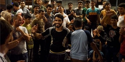 Képünkön illegális bevándorlók a budapesti Keleti pályaudvar előtt kialakított tranzit zónában szeptember 2-án.
