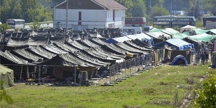 Képünk illusztráció, migránsok számára kialakított tábor a röszkei határátkelő közelében.