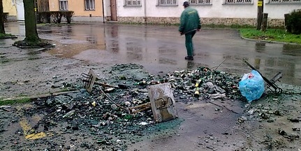 Képünk az elégett szelektív hulladékgyűjtők helyén készült.