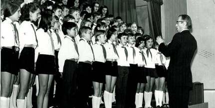 Képünkön: Kiss Mklós vezényli az iskola kórusát az 1970-es években.