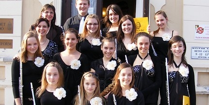 Képünkön: A mohácsi fuvolások Bólyban az Erzsébet Vigadó előtt.